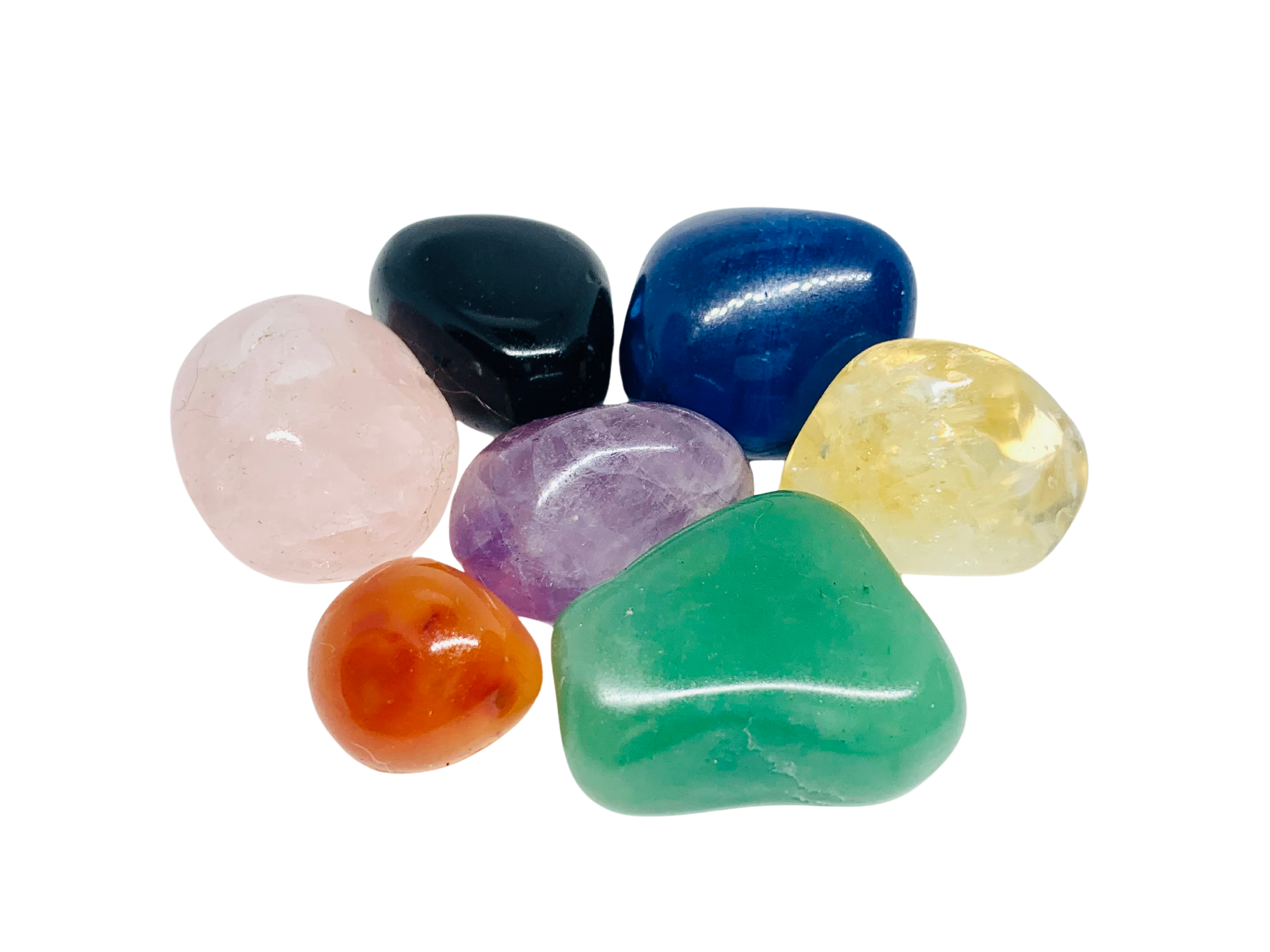 Crystal selections for each chakra point. Obsidian, Carnelian, Citrine, Adventrine, Blue Onyx, Quartz & Amethyst
