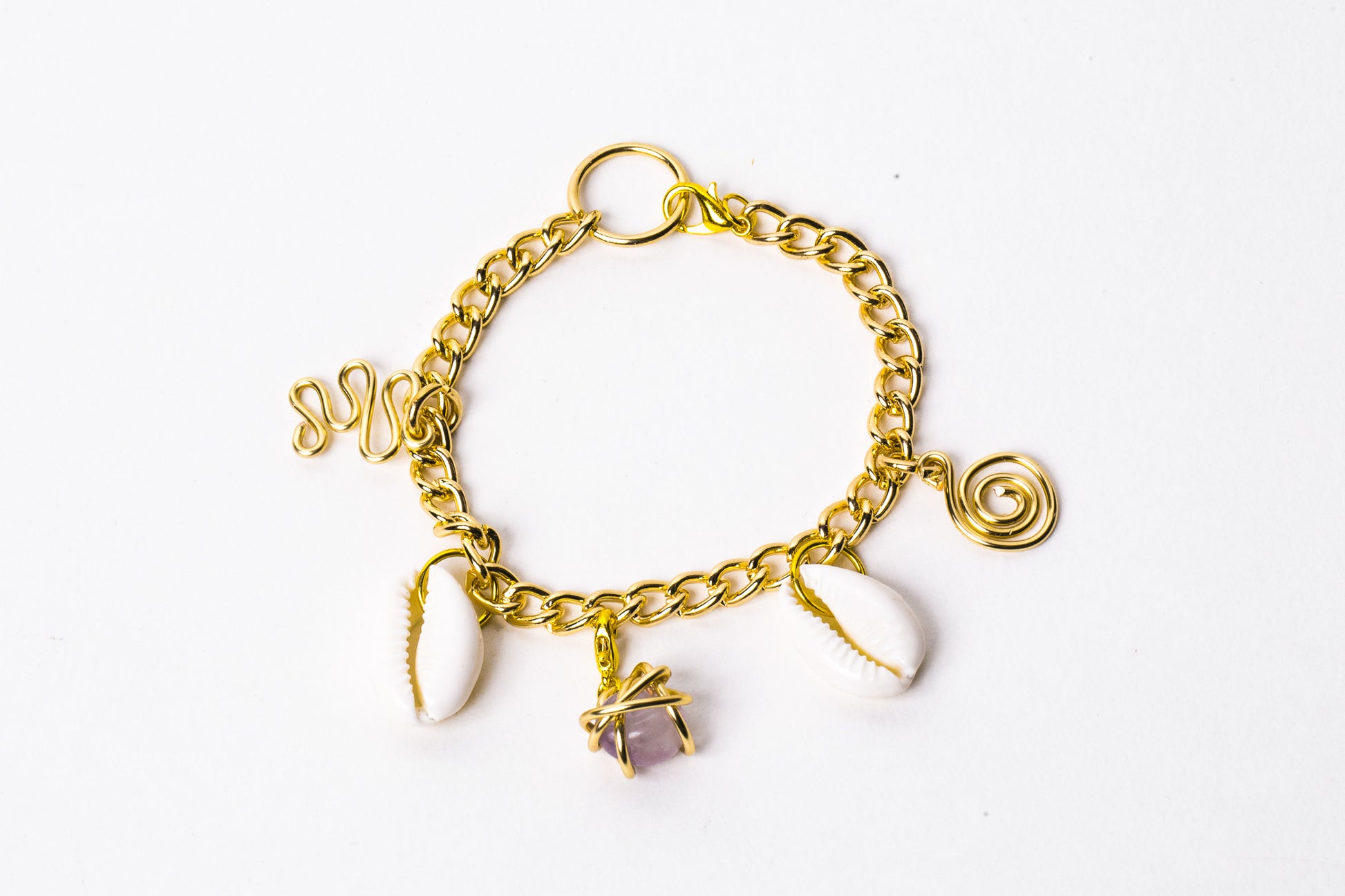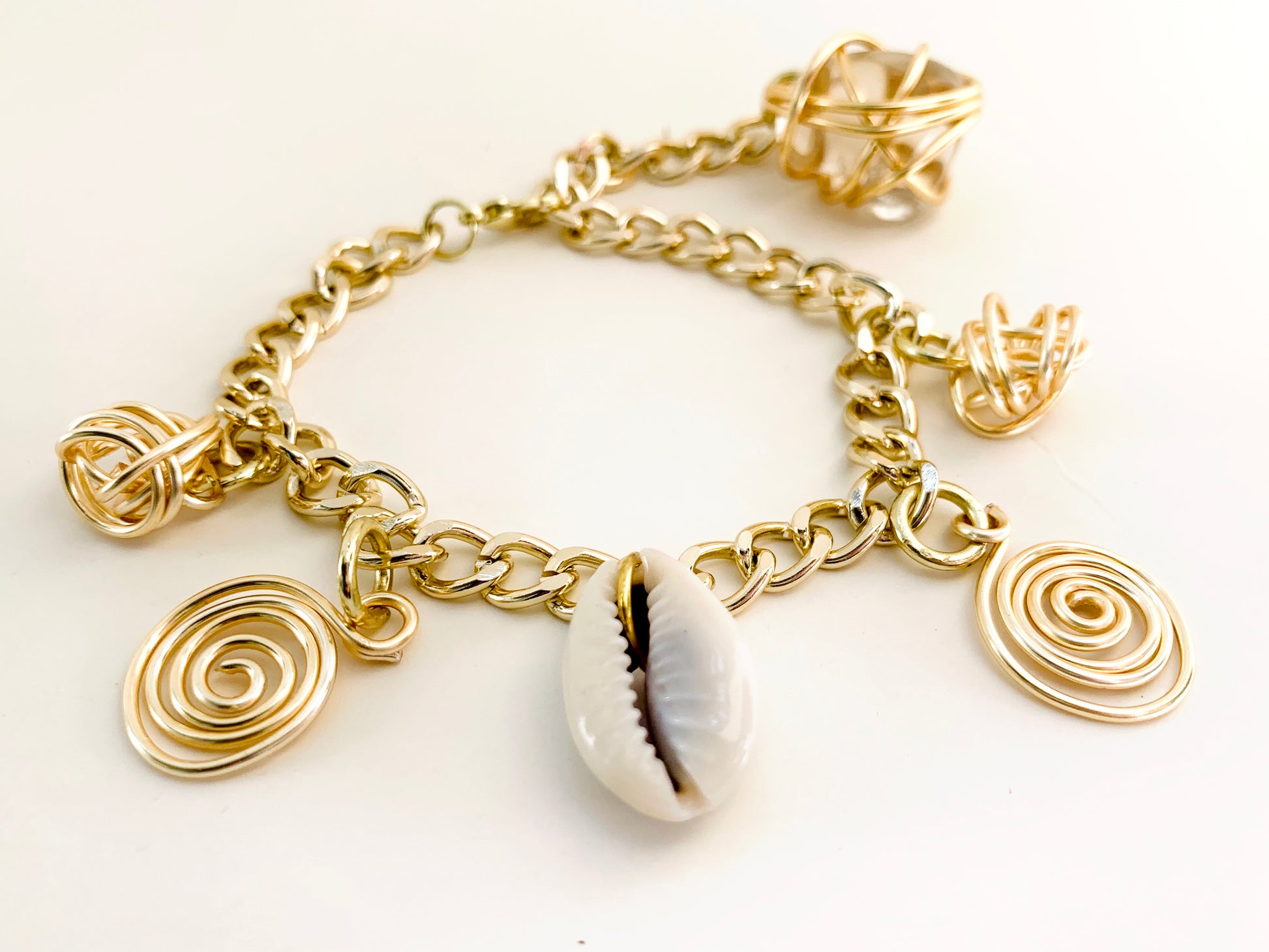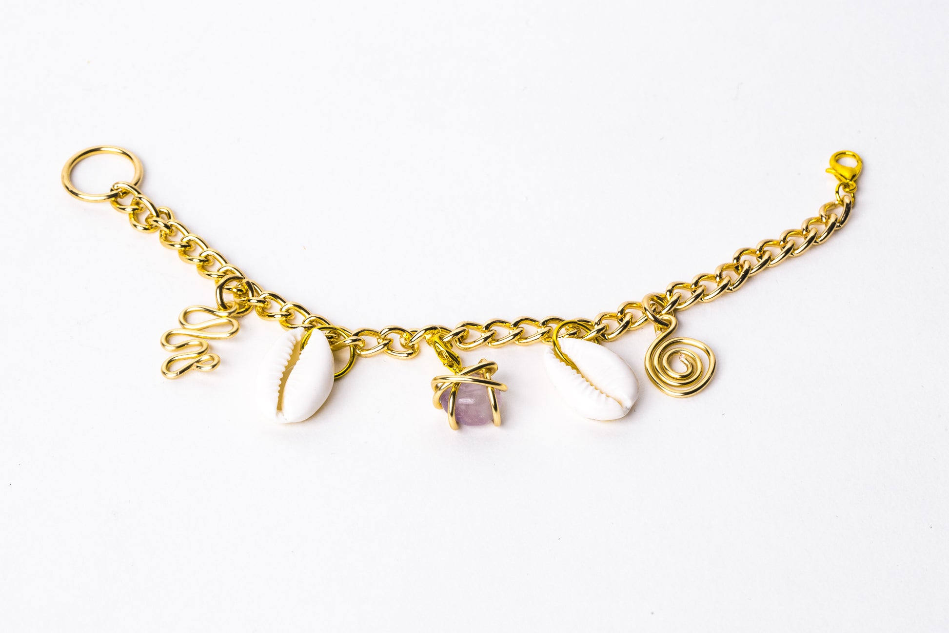 Whether you’re looking for a charm bracelet, anklet or fashion accessory, this versatile charm link is dripped with gems and wire shaped sigils perfect for any mood.