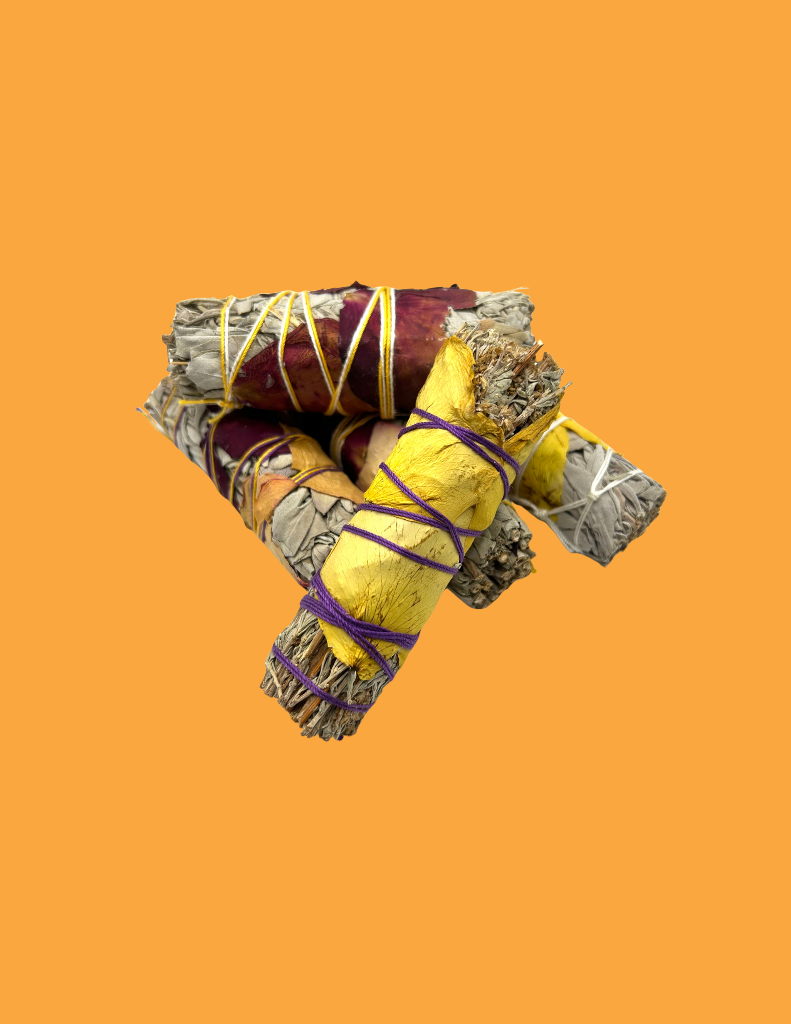 Hand-wrapped rose & white sage by our very own Third Eye Freak. 2 Bundles per order.